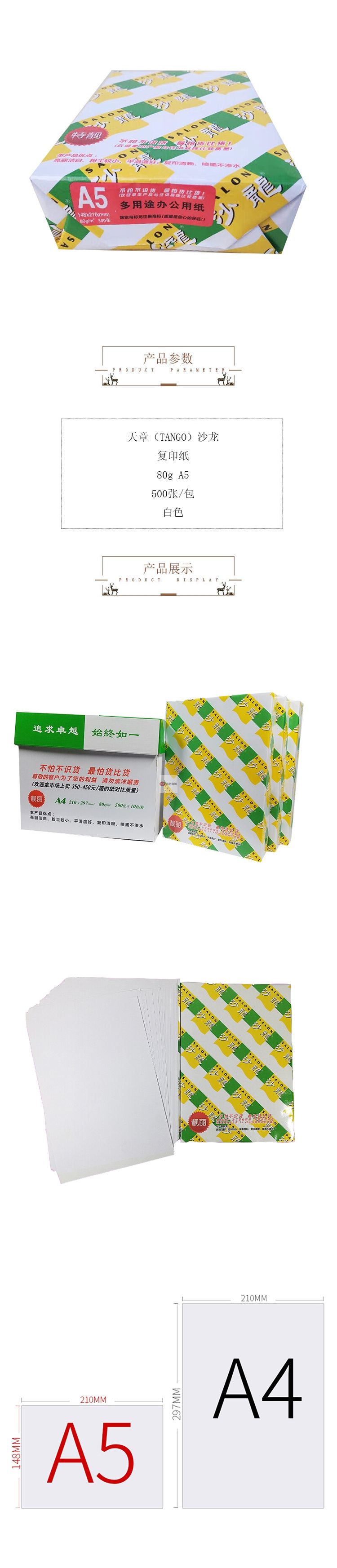 商品名稱:天章(TANGO)沙龍復(fù)印紙 80g A5 500張/包 20包/箱 白色