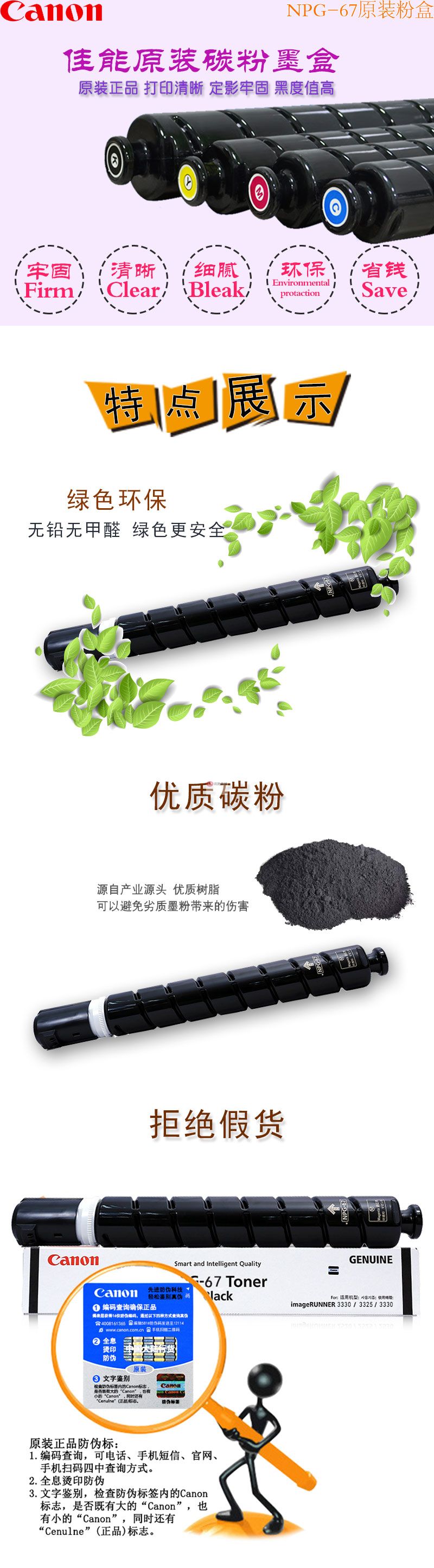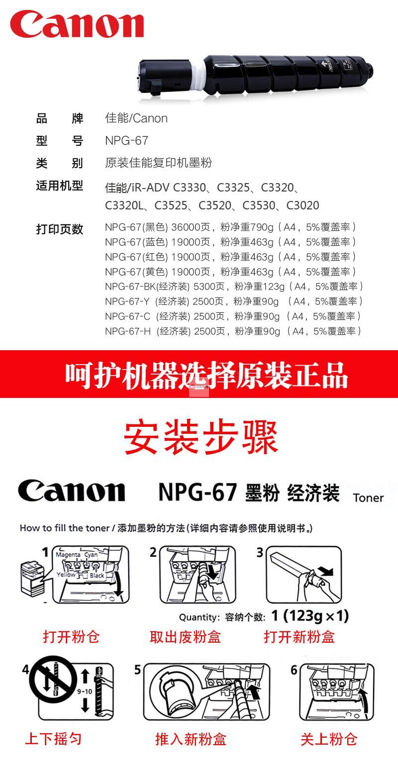 商品名稱(chēng):佳能(Canon)墨粉盒/NPG-67 黑色墨粉盒 (標(biāo)準(zhǔn)裝36000頁(yè)) (適用C3330/C3320/C3020/C3520)(NPG-67)