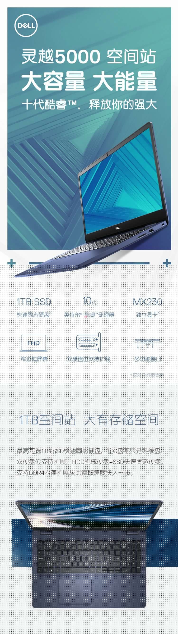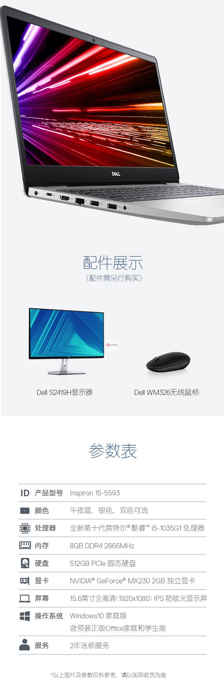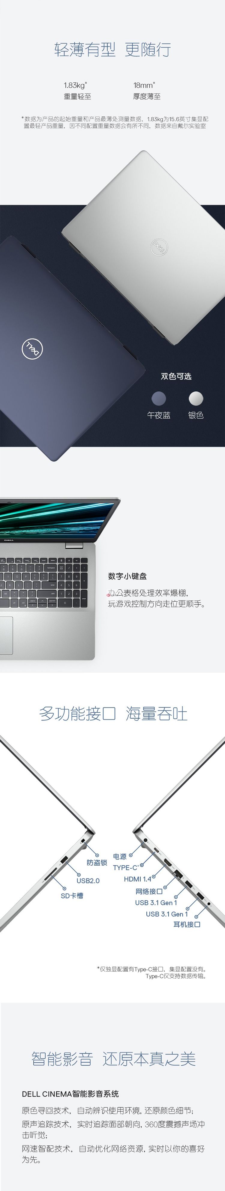 商品名稱:戴爾DELL靈越5000 酷睿i5 15.6英寸網課學習輕薄筆記本電腦(i5-1035G1 8G 512GSSD MX230 2G獨顯)銀