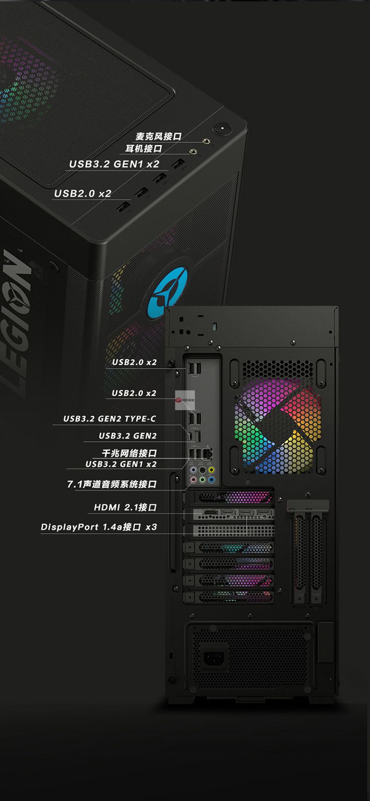 自營聯想(Lenovo)拯救者刃9000 2020十代英特爾酷睿i7游戲電腦主機(i7-10700K RTX3060Ti 16G 512G ARGB側透)