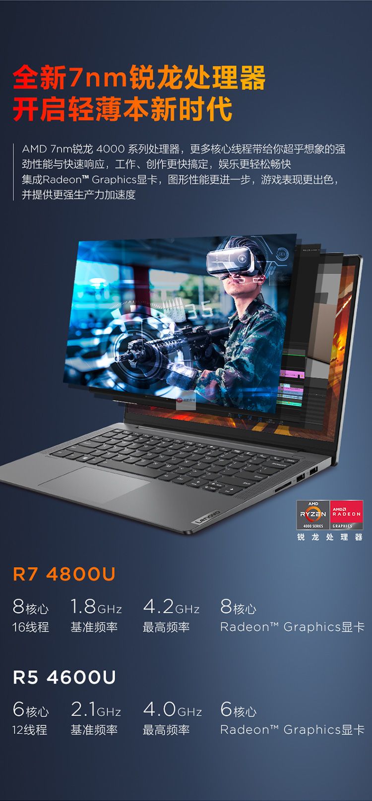 商品名稱:聯想(Lenovo)小新Air14銳龍版性能輕薄本 14英寸全面屏辦公筆記本電腦(6核R5-4600U 16G 512G 高色域)深空灰