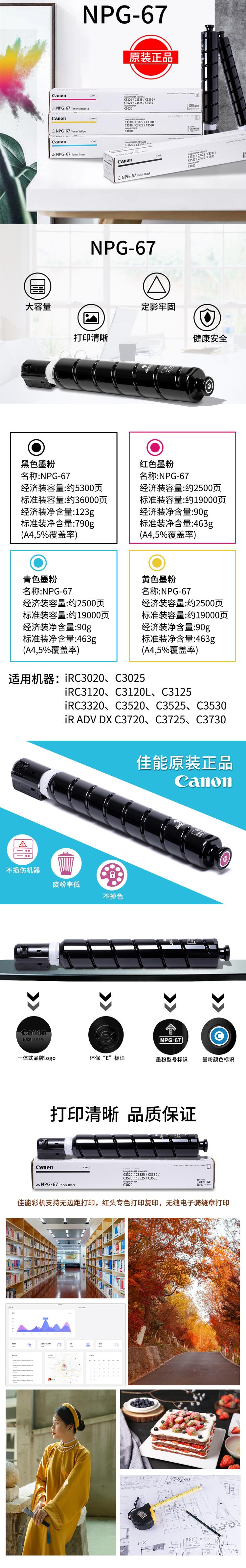 自營佳能 NPG-67TonerMagenta 原裝墨粉紅色(支)(適用于iR-ADV C3520/3525/3530/3320/3320L/3325/3330,C3020)