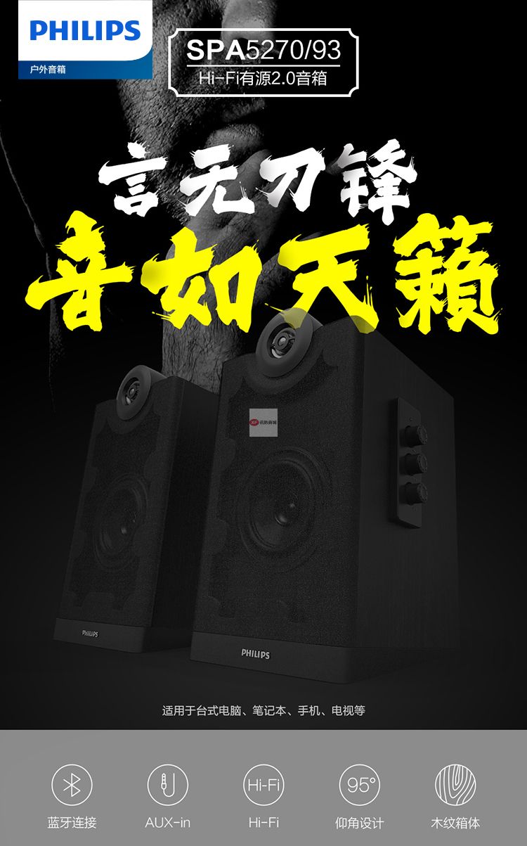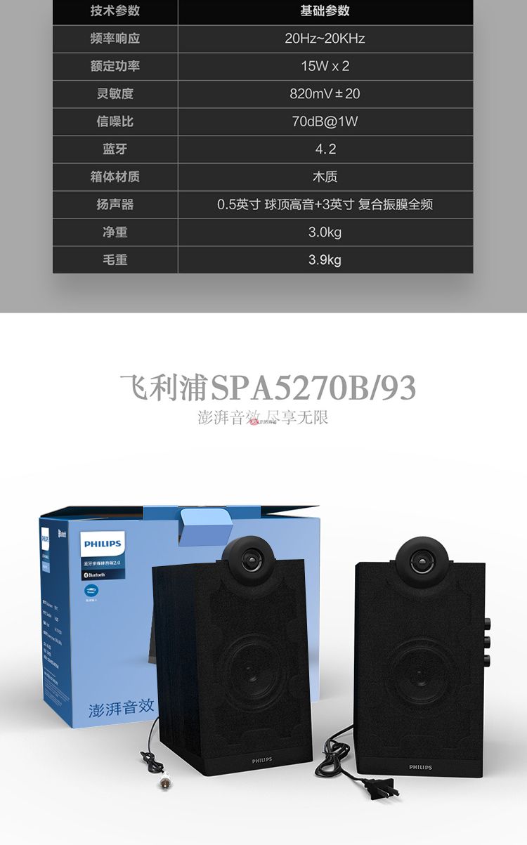 商品名稱:飛利浦(PHILIPS)SPA5270B 音箱電腦藍牙無線HIFI2.0有源多媒體音響