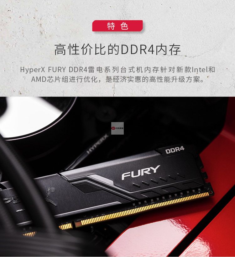 商品名稱:金士頓 (Kingston) 16GB(8G×2)套裝 DDR4 2666 臺式機內存條 駭客神條 Fury雷電系列
