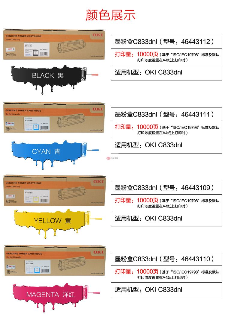 商品名稱:OKI原裝墨粉盒C833(黑色)適用于oki C833DN