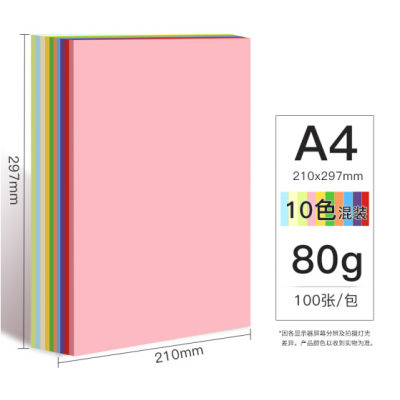 自營天章(TANGO)新綠天章A4彩紙十色混色 彩色打印紙復印紙 彩色卡紙非硬 彩色紙兒童手工折紙剪紙 混色80g100張