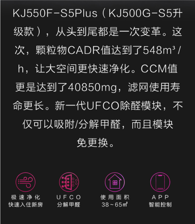 商品名稱:亞都(YADU) KJ550F-S5Plus 空氣凈化器辦公室家用靜音 凈化器 除甲醛 除霧霾(UFCO分解技術)
