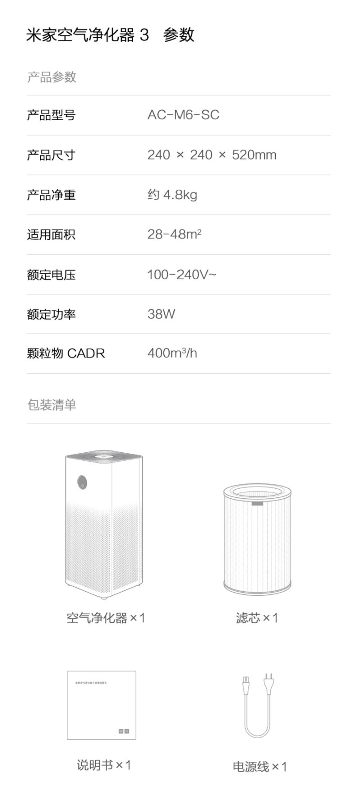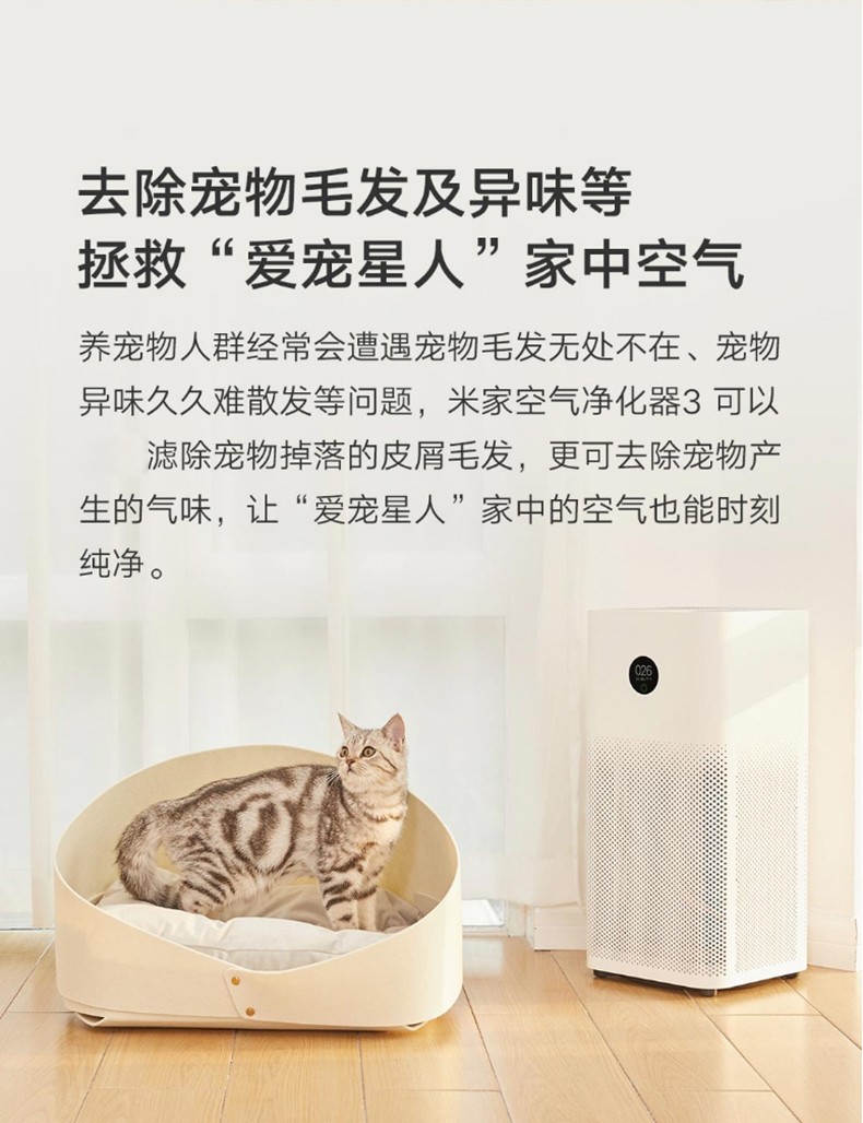 商品名稱:小米(MI)米家空氣凈化器3代(AC-M6-SC) 家用智能除甲醛霾PM2.5監測室內凈化顆粒物凈化器 米家空氣凈化器3