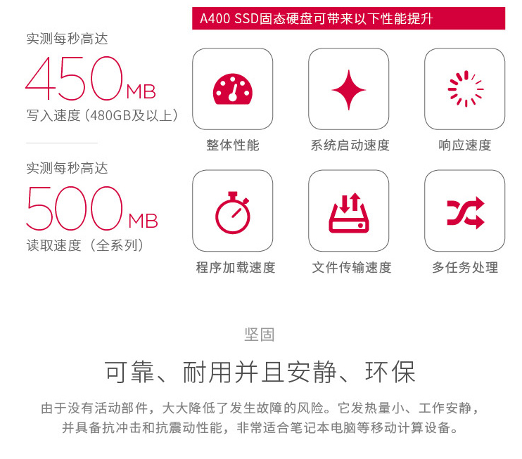 商品名稱(chēng):金士頓(Kingston) 480GB SSD固態(tài)硬盤(pán) SATA3.0接口 A400系列 『A400』SATA 經(jīng)典 『480-512』GB