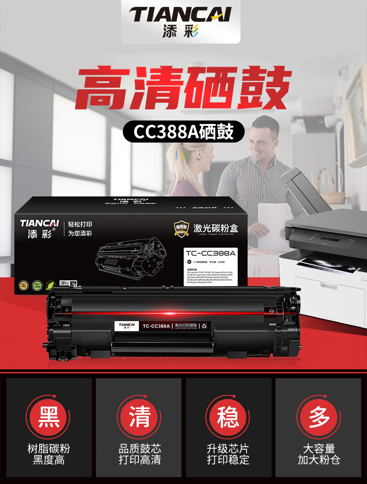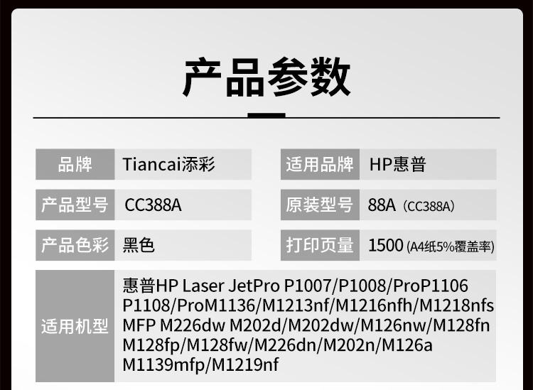 商品名稱:添彩商用裝企業版388A 88A硒鼓適用惠普HP LaserJet P1106 P1007 P1108 M126nw M202 M1136 M1213nf M1216nfh