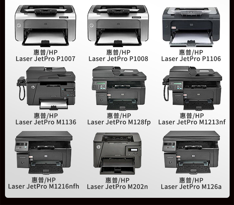 • 適用機型:HP LaserJet P1007/P1008 / HP LaserJet Pro P1106/P1108 HP LaserJet Pro M1136/M1213nf/M1216nfh/M1218nfs MFP/ MFP M226dw M202d/ M202dw/M126nw/M128fh/M128fp/ M128fw/M226dn/M202n/M126a/M1139mfp/M1219nf