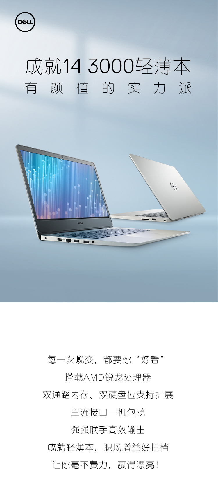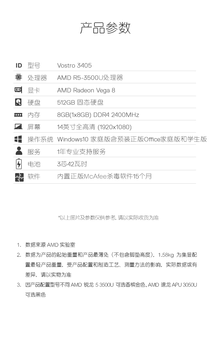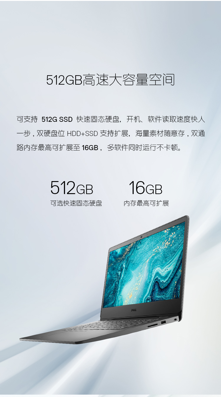商品名稱:戴爾DELL成就Vostro 14-3405 14英寸輕薄商務筆記本電腦(AMD R5-3500U 8G 512GSSD )