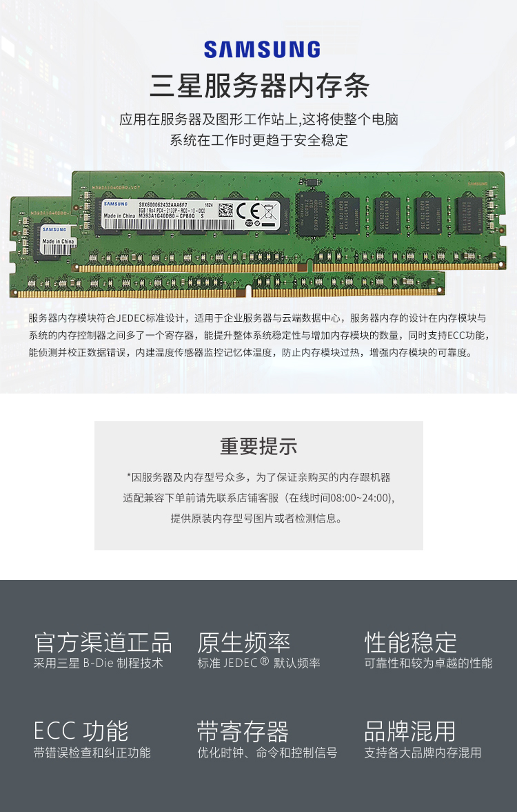 自營三星/SAMSUNG便攜式服務(wù)器移動工作站筆記本糾錯(cuò)校驗(yàn)內(nèi)存條支持NAS ECC SODIMM 16G DDR4 2400 ECC SODIMM