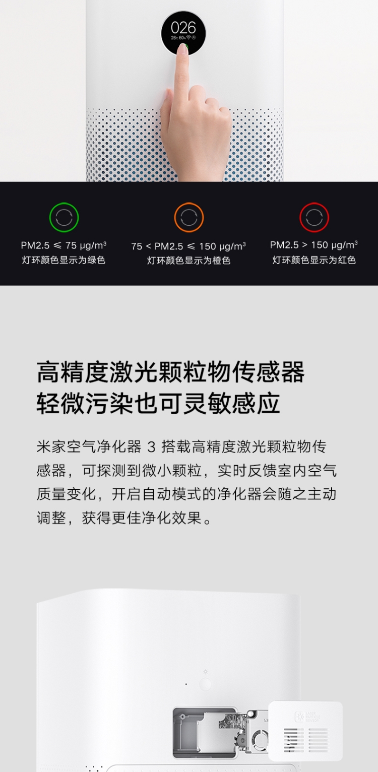 商品名稱:小米(MI)AC-M6-SC 米家空氣凈化器3 400m3/h