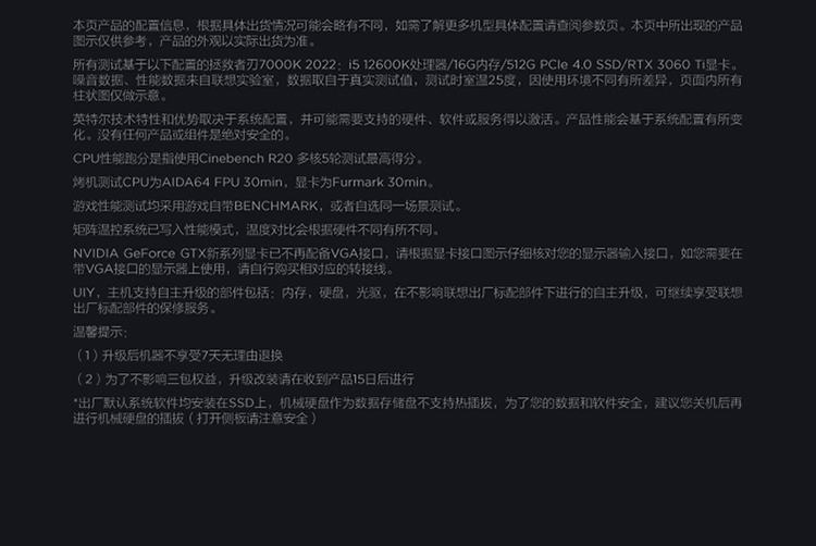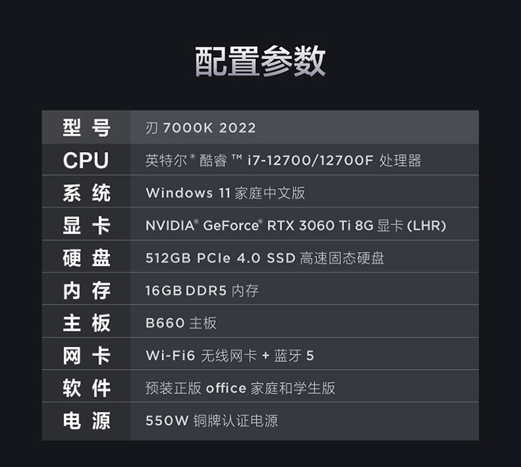 商品名稱:?聯想(Lenovo)拯救者刃7000K 2022游戲電腦主機(12代i7-12700F RTX3060Ti LHR顯卡 16G DDR5 512G SSD)