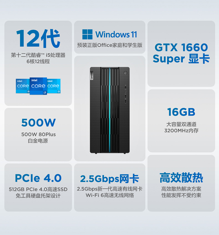 商品名稱:聯想(Lenovo)GeekPro 2022設計師游戲臺式電腦主機(12代i5-12400F GTX1660super 16G 512G SSD )