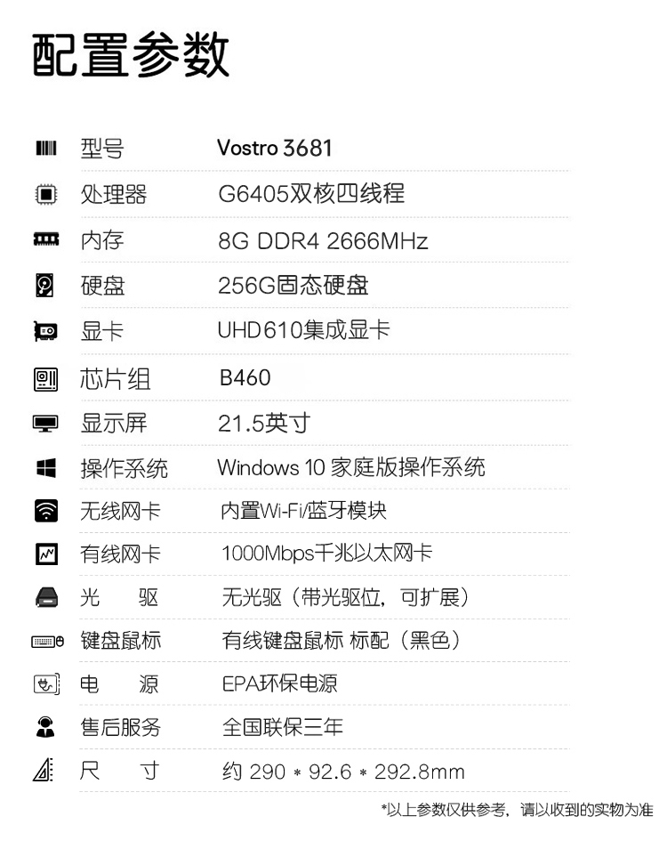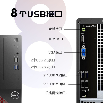 商品名稱:戴爾(DELL) 成就3681 辦公商用家用臺式電腦 全套整機迷你小主機3710同款外觀 主機+21.5英寸顯示器 英特爾G6405 8G 256G固態(tài)