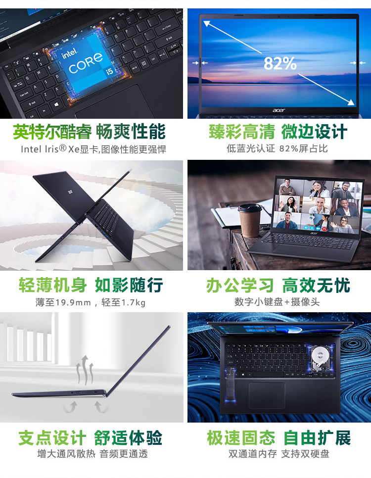 商品名稱:宏碁(Acer)墨舞EX215 15.6英寸輕薄筆記本電腦(酷睿i5 銳炬顯卡 16G 512GSSD 全高清防藍光 Win11)