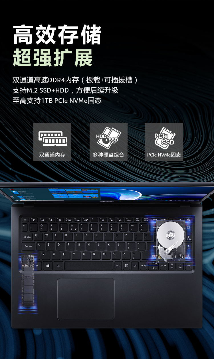 自營宏碁(Acer)墨舞EX215 15.6英寸輕薄筆記本電腦(酷睿i5 銳炬顯卡 16G 512GSSD 全高清防藍光 Win11)
