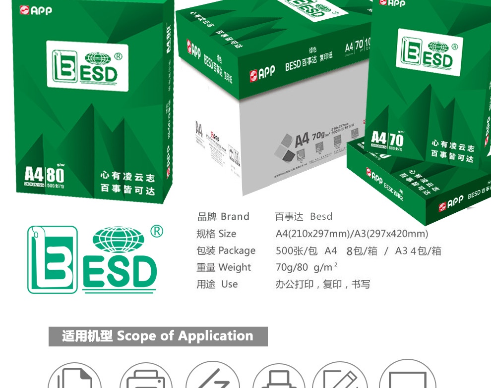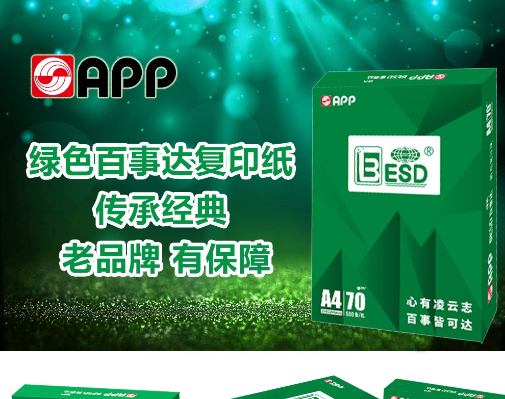 商品名稱:金光(APP)綠色百事達(Besd)A3/70g 復印紙 500張/包 10包
