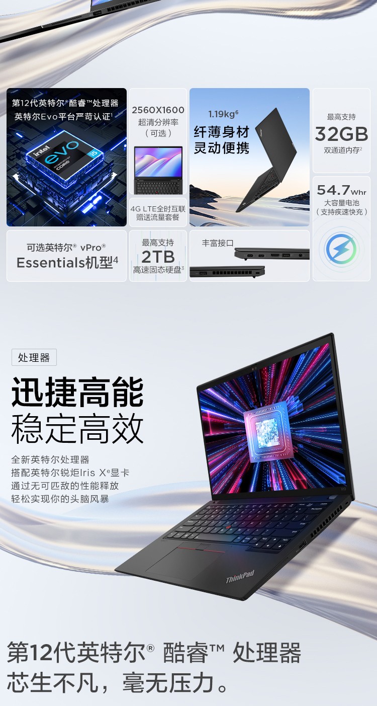 自營ThinkPad 聯(lián)想 X13 2022高端輕薄本 13.3英寸游戲商務辦公超薄筆記本電腦 指紋識別 12代i5 16G 512G 02CD