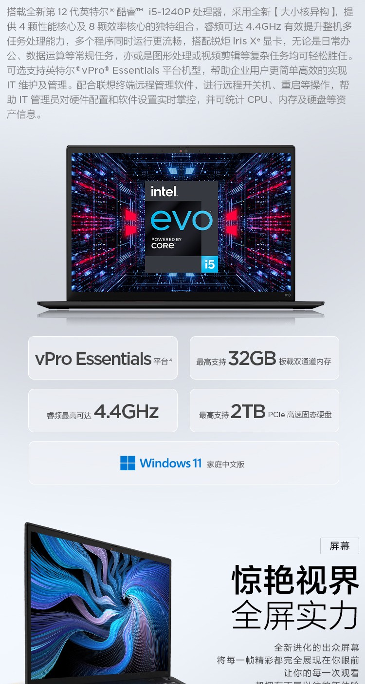 • CPU類型:第12代智能英特爾酷睿i5處理器