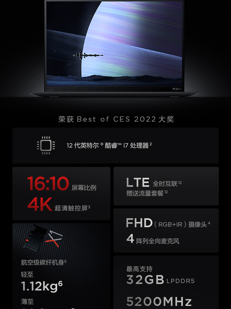 商品名稱:ThinkPad X1 Carbon 2022款12代英特爾酷睿處理器14英寸高端商務(wù)輕薄筆記本電腦 12代i5 16G 512G 02CD 2.2K屏