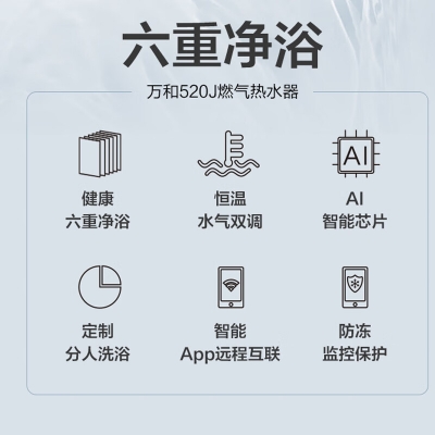 商品名稱:萬和(Vanward)16升燃氣熱水器天然氣感溫水氣雙調精控恒溫智能防凍保護6重健康浴JSQ30-520J16