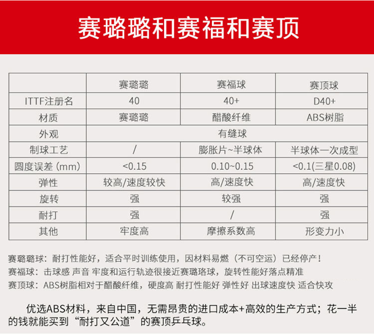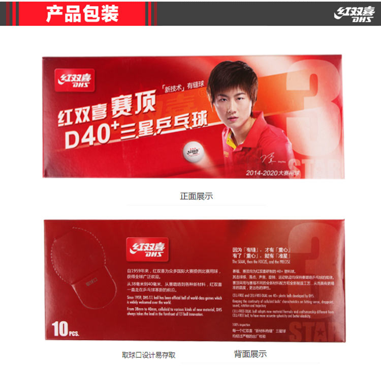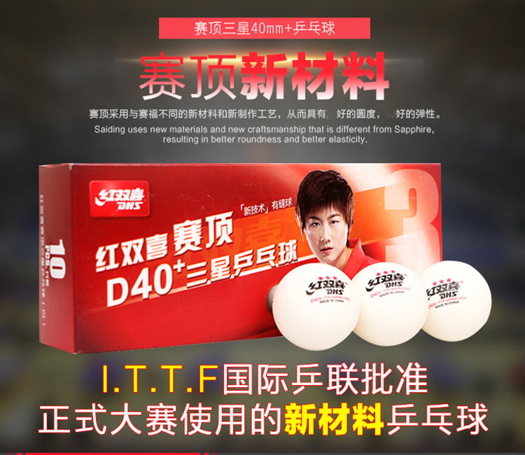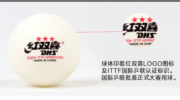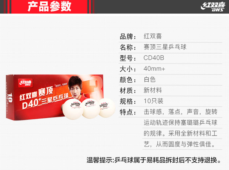自營紅雙喜乒乓球三星賽頂3星比賽球 白色 10/個/盒