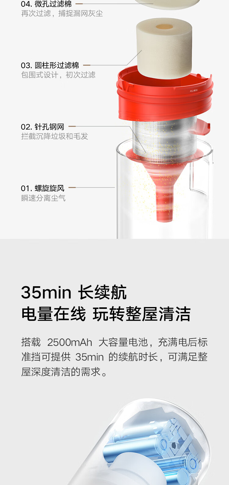 商品名稱:小米無線吸塵器2Lite 吸塵器家用升級旋風風道 持久澎湃吸力 輕量省力二合一