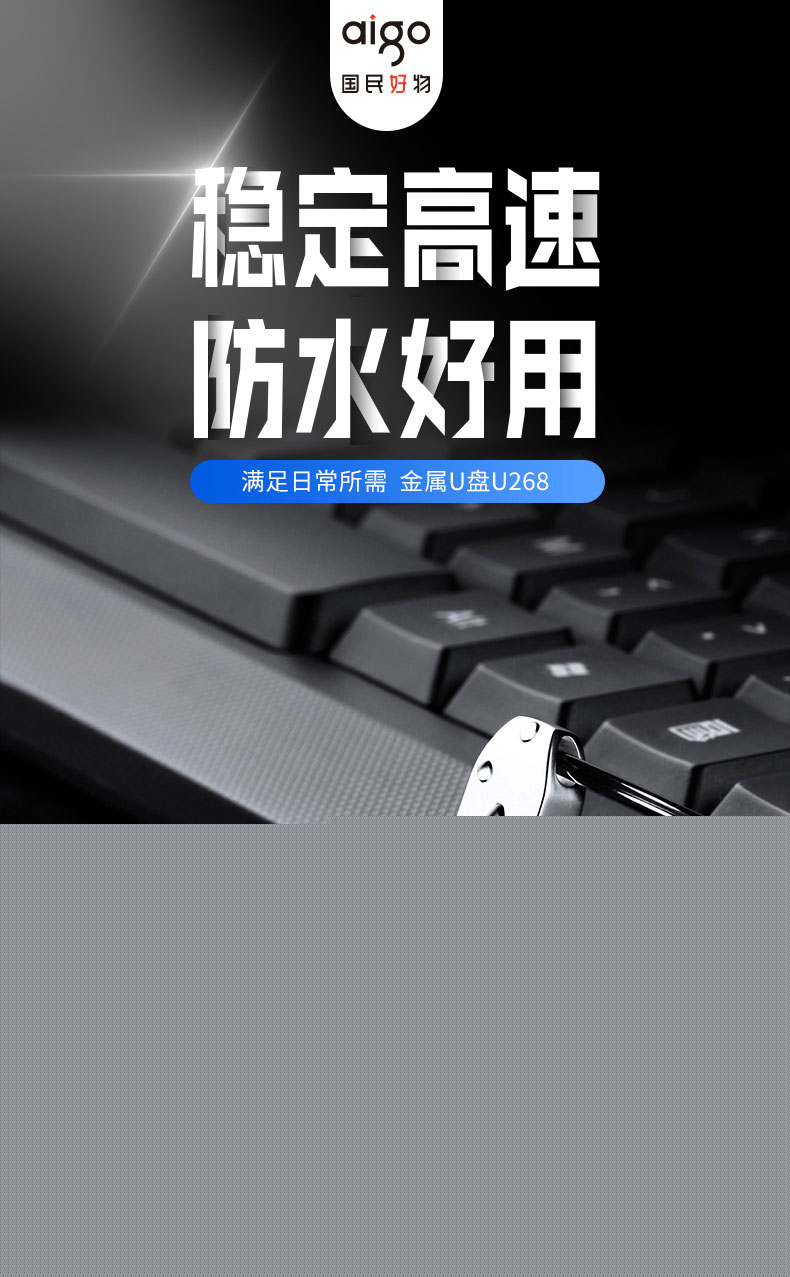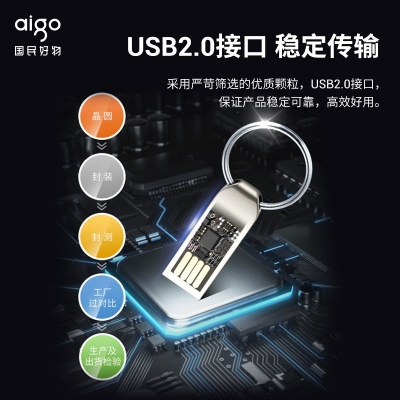 自營(yíng)愛(ài)國(guó)者(aigo)32GB USB2.0 U盤 U268迷你款 銀色 金屬U盤
