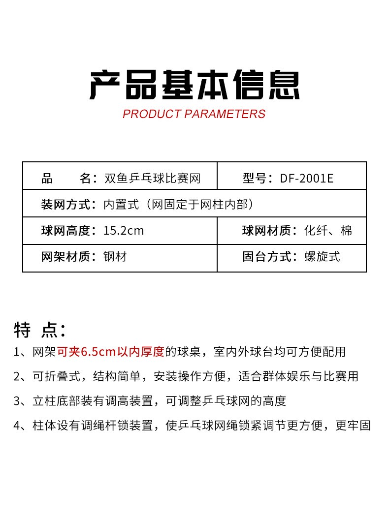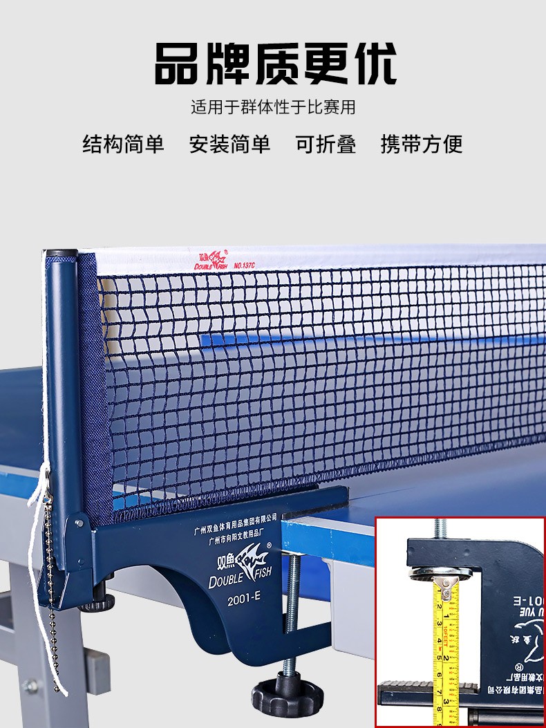 商品名稱:雙魚乒乓球網架套裝2001E6.5cm加厚 深藍色