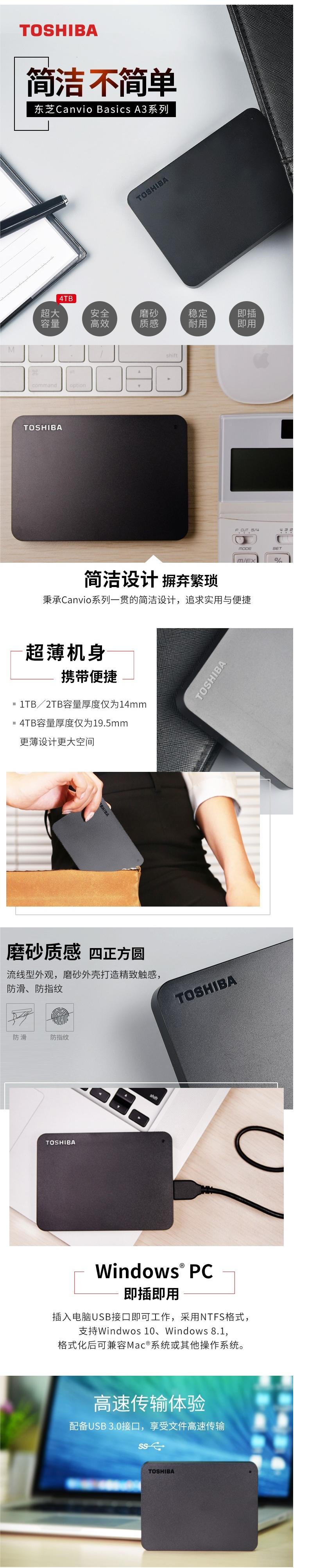 自營東芝(TOSHIBA) 4TB 移動硬盤 新小黑A3 USB3.0 2.5英寸 商務黑 兼容Mac