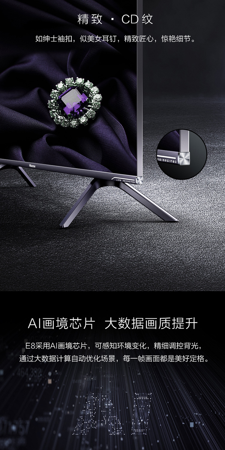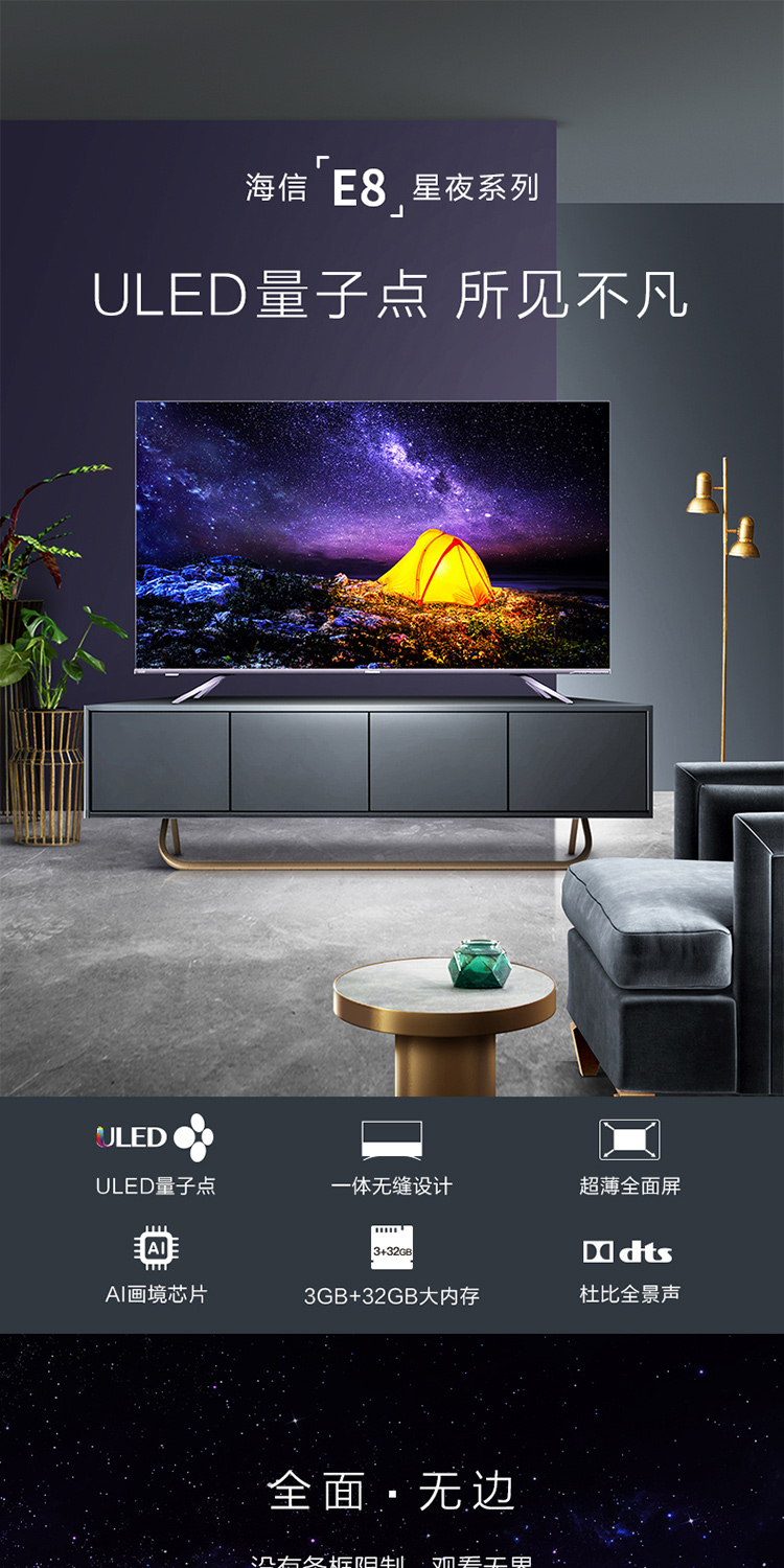 自營海信(Hisense)HZ55E8A 55英寸 4K ULED超畫質 量子點 超薄全面屏 AI人工智能液晶電視機