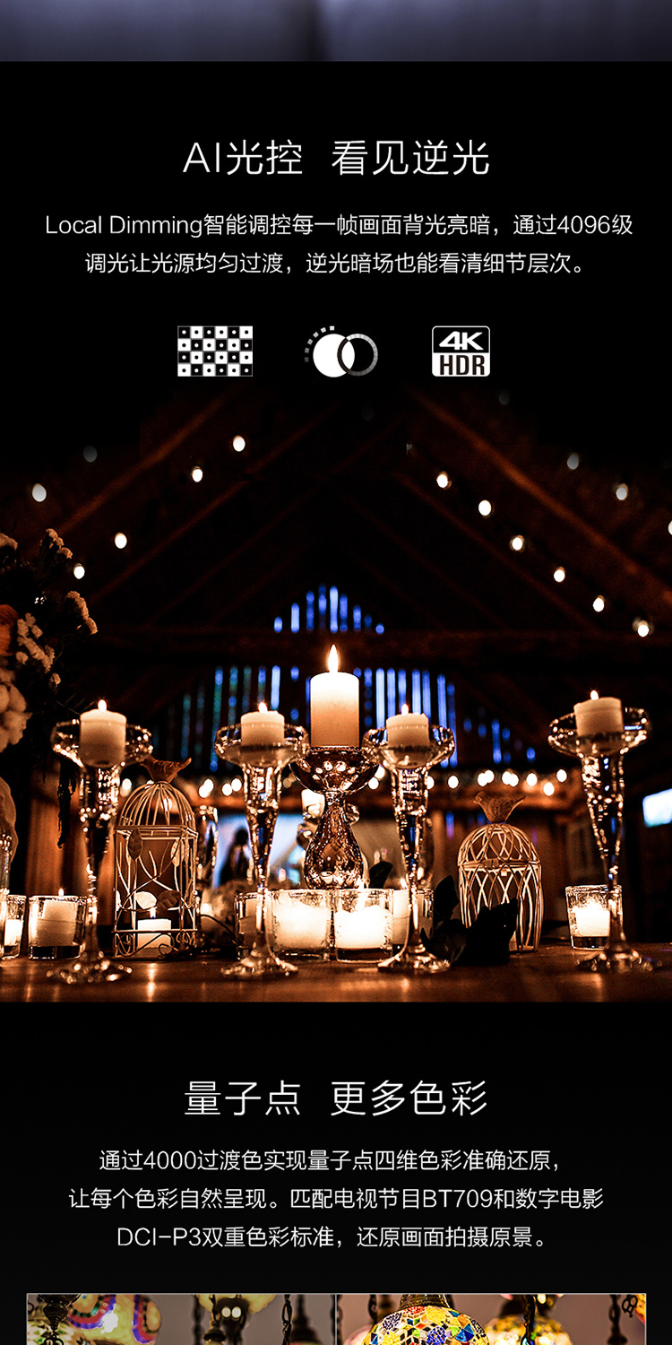 • 電視類型:全面屏,人工智能,超薄,4K超清,量子點