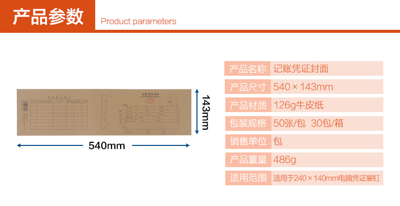 商品名稱:浩立信電腦記帳憑證封面540*143mm50張/包 大號憑證封面(適用240*140MM憑證)0021