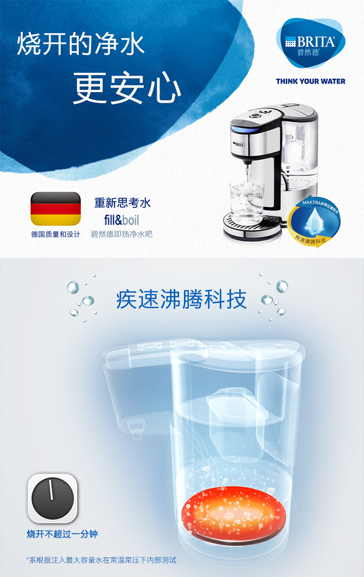 自營(yíng)碧然德(BRITA)過(guò)濾凈水器 家用濾水壺 凈水壺 FB2020B1即熱凈水吧 電熱過(guò)濾凈水壺 1.8L