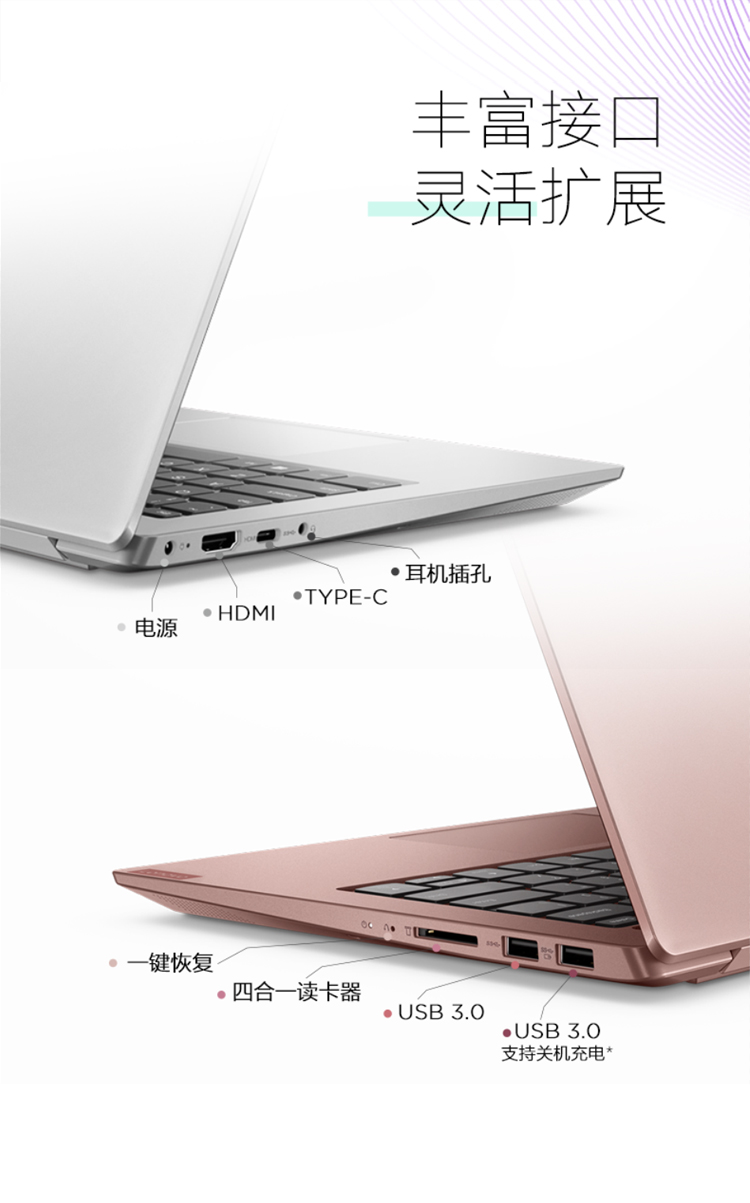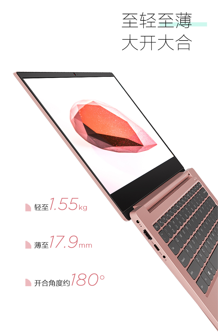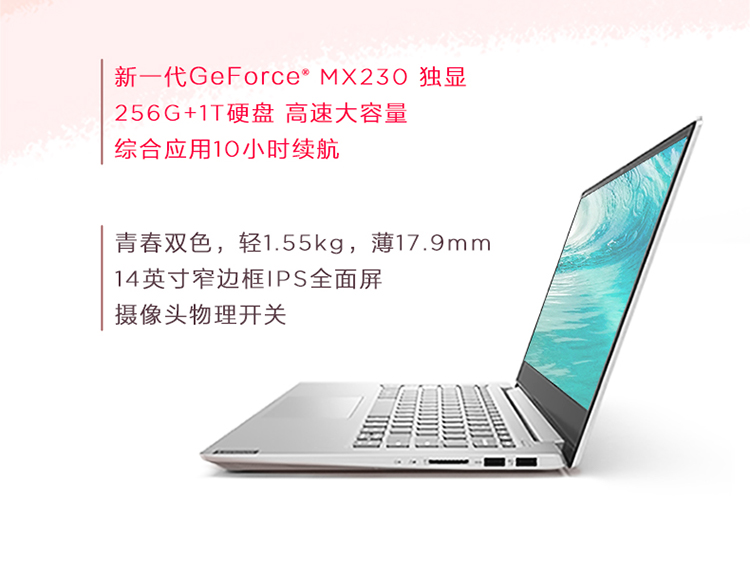 自營聯想(Lenovo)小新14英寸 英特爾酷睿i5 輕薄窄邊框筆記本電腦(I5-8265U 8G 1TB+256G PCIE MX230 IPS)仙女粉
