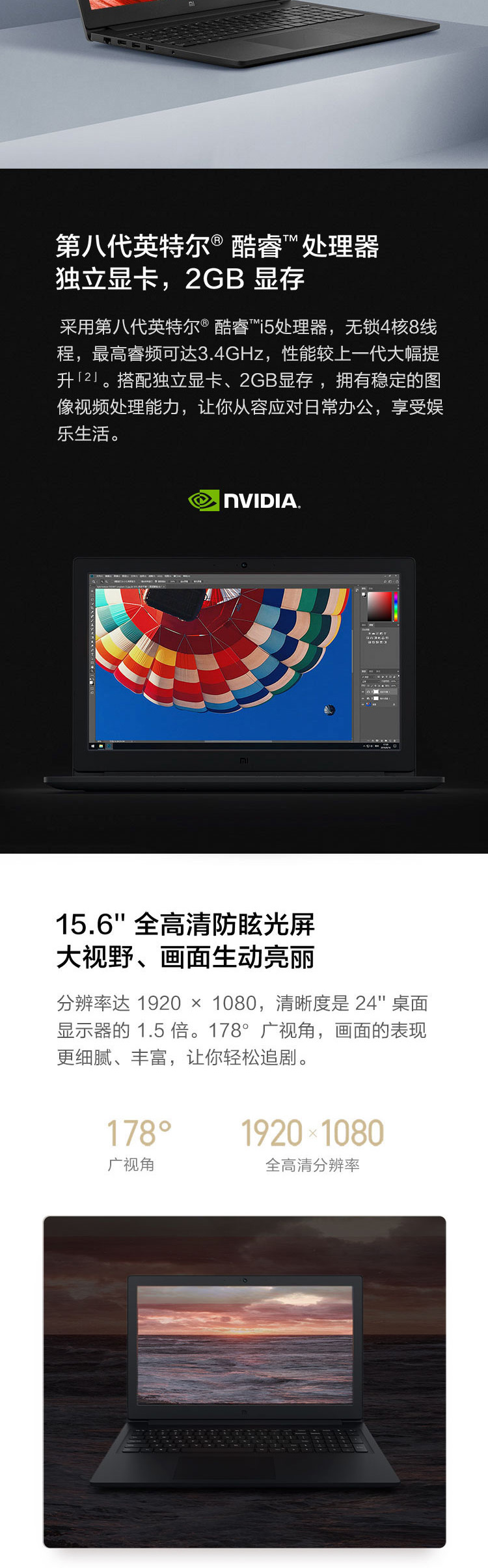 商品名稱:小米 (MI)Ruby 2019款 15.6英寸金屬輕薄筆記本電腦(第八代英特爾酷睿i5-8250U 8G 256G SSD 2G GDDR5獨顯 FHD 全鍵盤 Office Win10) 深空灰