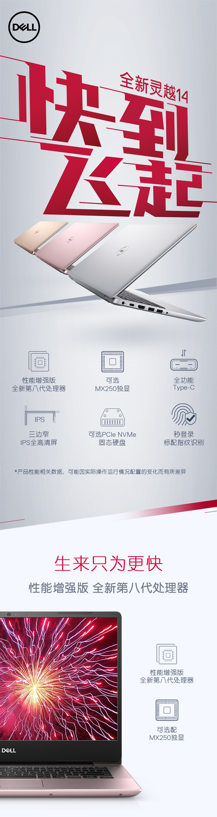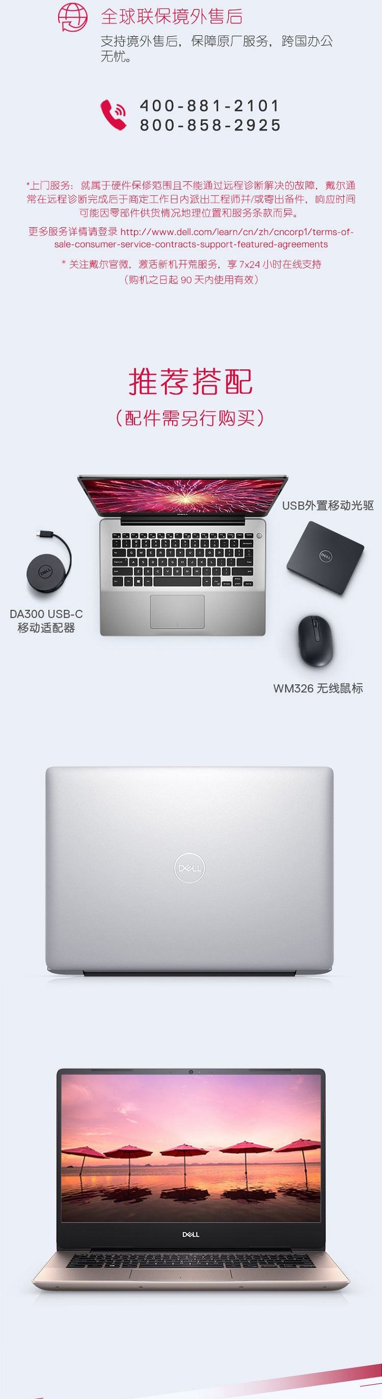 商品名稱:戴爾靈越14燃 14英寸英特爾酷睿i5輕薄窄邊框筆記本電腦(i5-8265U 8G 256G MX250 2G獨顯 背光鍵盤)冰河銀